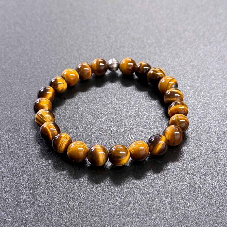 力強い輝きを放つタイガーアイは、古くから“成功を引き寄せる石”として親しまれてきました。黄金色の縞模様が虎の眼のように光を捉え、持ち主の洞察力や判断力を高めるといわれています。 ビジネスシーンのお守りとしてはもちろん、金運アップを願う方にも人気のアイテムです。 ~効果~ 仕事運・財運・新しいことにチャレンジする人を応援・決断力・行動力を高める・ビジネスチャンスをつかむ・邪気から身を守る・人生での成功 使用石:タイガーアイ8mm 内径 15.5㎝ 価格 13800円(税込)