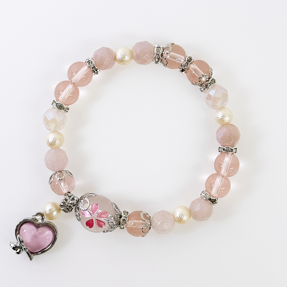 片想い、特にライバルがいる等、一筋縄ではいかない片想いの強力な助っ人になります。お相手の心にあなたの魅力を深く印象付けます。 使用石:クリスタル・ピンククォーツ・ローズクォーツ 内径 15cm 価格 27800円(税込)